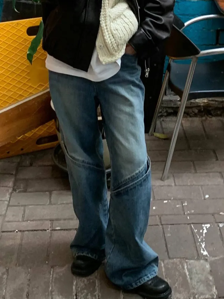 重工造型牛仔褲 ⧫ A字寬鬆版型,特殊設計,在膝線下方設計立體斜面裁片增加空間感,多層剪接讓褲子視覺上似微喇叭廓形,讓比例更有曲線,整體也非常寬鬆有份量,非常吸睛且工藝獨特的一條褲子! |購買須知 每台電腦、手機、平板的顯示亮度不同,拍攝的角度、光線等原因,些許色差在所難免, 我們盡量調整到與實際商品的顏色相近,購買前請謹慎思考後再下單。 不接受個人因素、人為損壞為理由退換貨。 商品尺寸測量約2cm左右誤差均屬正常範圍