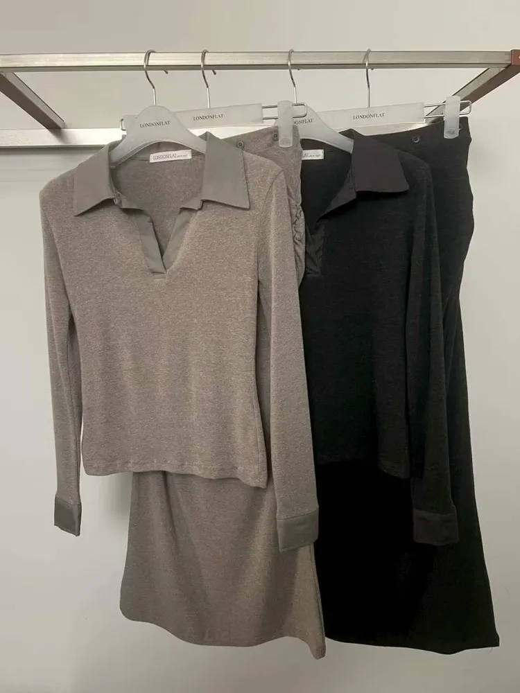 合身set(上衣+裙子)淺灰/深灰 ⧫ |購買須知 每台電腦、手機、平板的顯示亮度不同,拍攝的角度、光線等原因,些許色差在所難免, 我們盡量調整到與實際商品的顏色相近,購買前請謹慎思考後再下單。 不接受個人因素、人為損壞為理由退換貨。 商品尺寸測量約2cm左右誤差均屬正常範圍。 |Model 170cm/53kg
