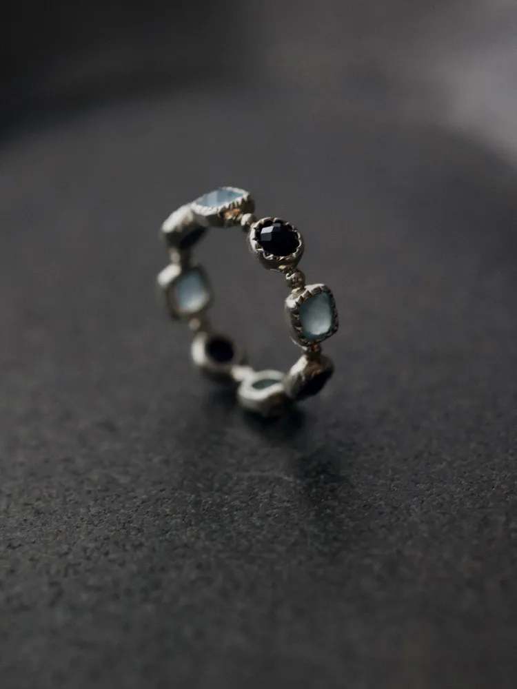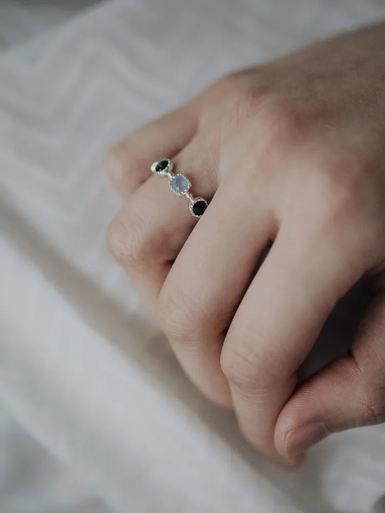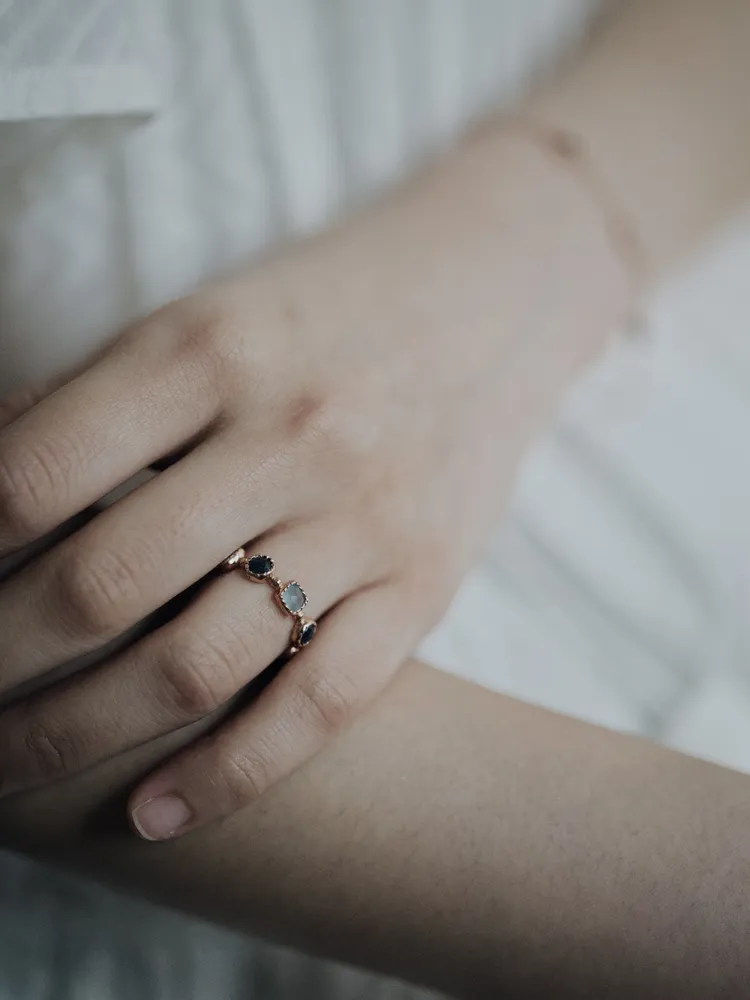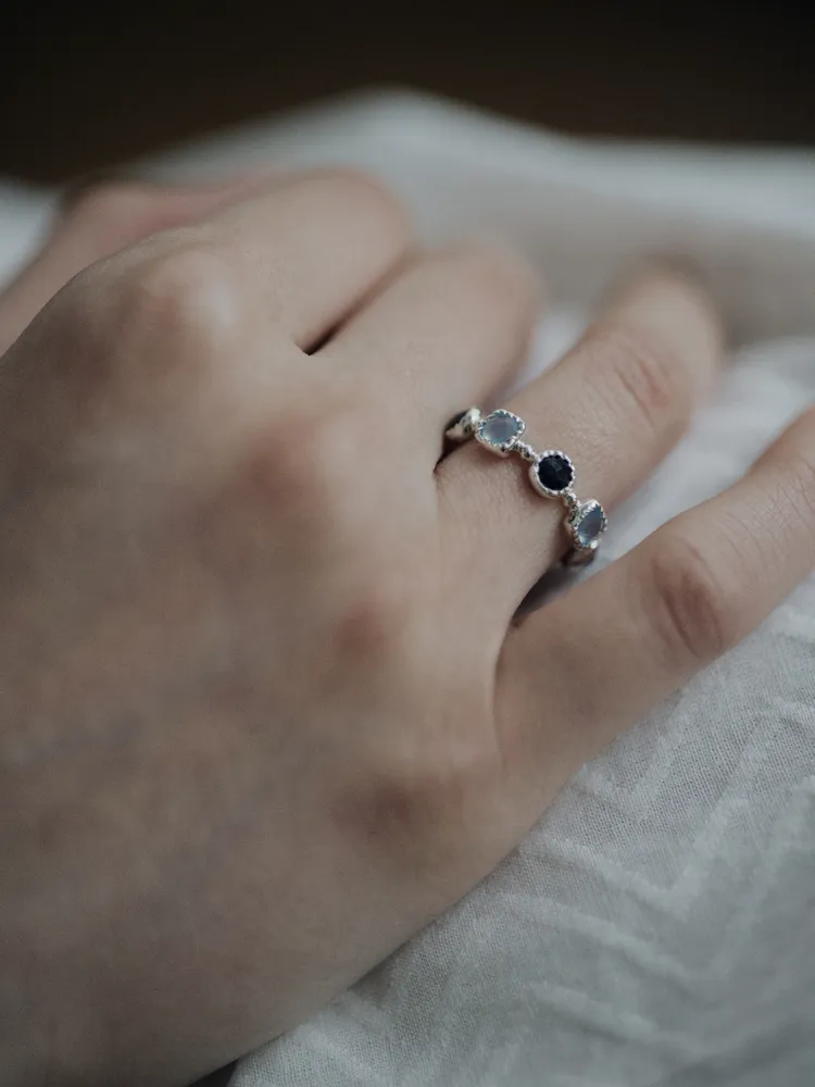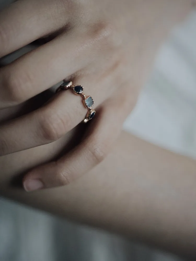 Treasure|自然形鑲嵌藍寶石戒指 純銀/玫瑰金