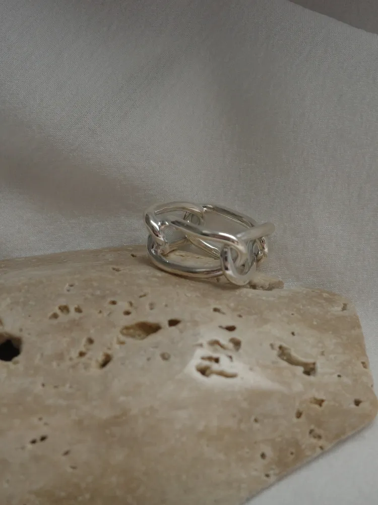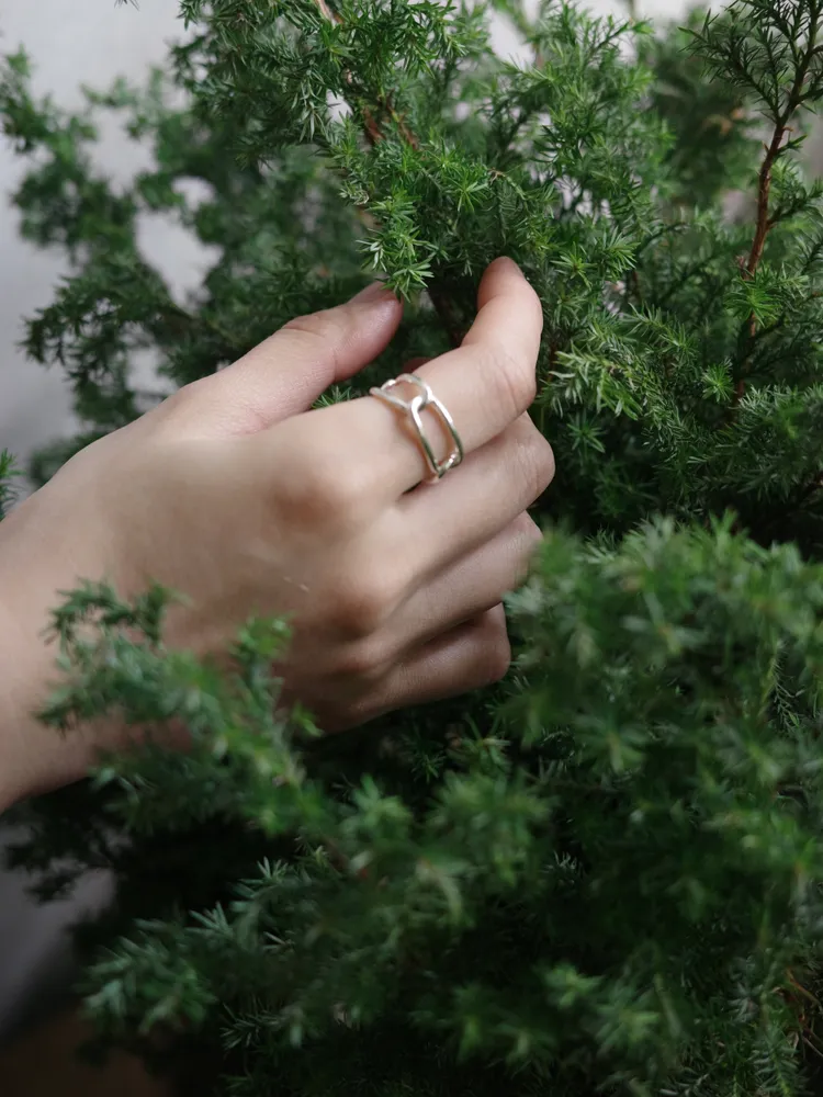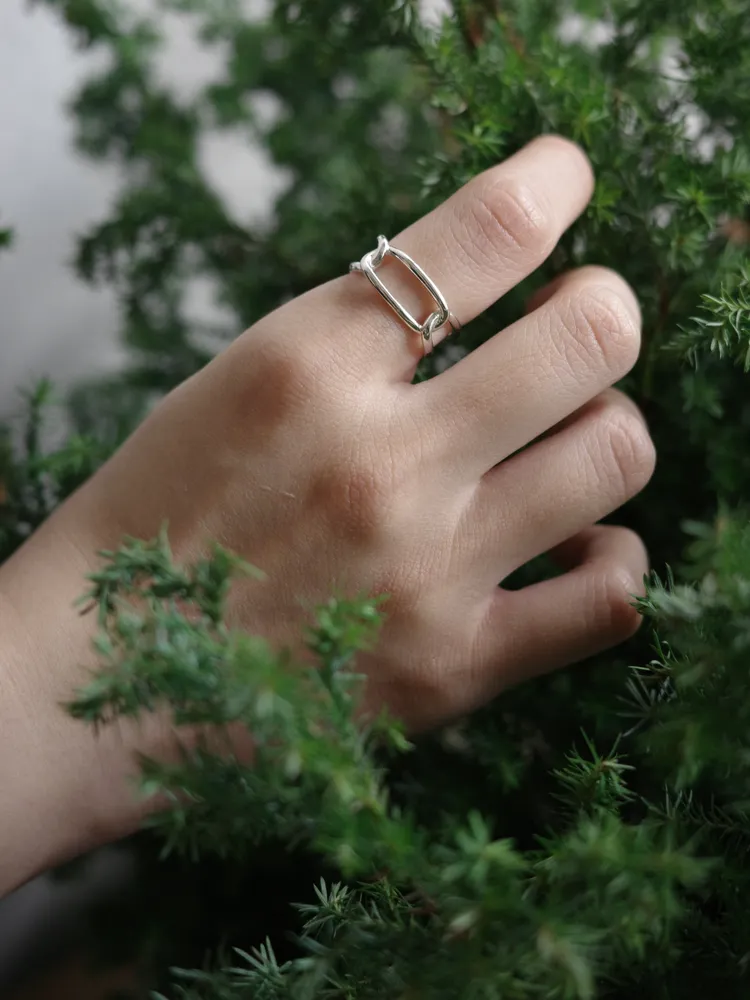 ✧ 925Silver 簍空環扣圈戒指 可調式